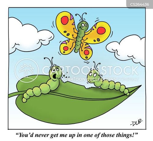I like the idea that we leave the caterpillar on the ground and become a butterfly in the air.